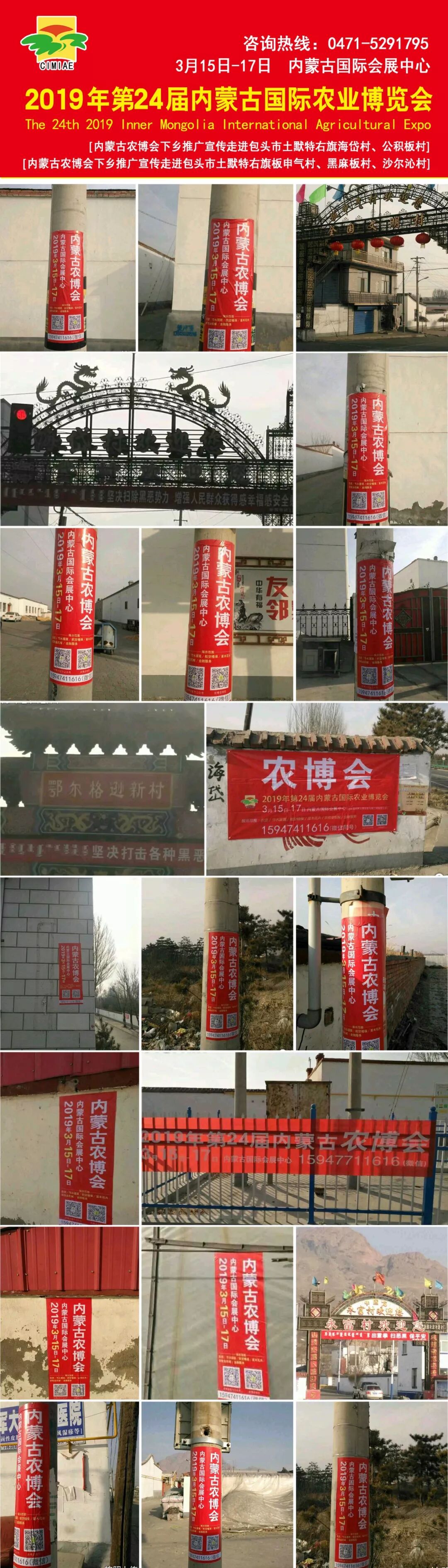 2019第24届内蒙古农博会下乡推广宣传现已全面启动,组委会以村为单位,安排10辆宣传车,投入巨资,重点走访呼和浩特、乌兰察布、鄂尔多斯、巴彦淖尔、乌海、阿拉善盟、河北、北京、天津、甘肃、山西等地的农资经销商、农资市场、农业合作社、种植大户及绿化灌溉公司,以条幅、即时贴、海报等形式对展会进行推广!实事求是,深入基层,专业专注,全心全意服务于每一位支持内蒙古农博会的新老客户,2019年3月15日,让我们一起相约呼和浩特内蒙古国际会展中心,我们将以最饱满的热情欢迎四海宾朋,共商合作,共谋发展!
