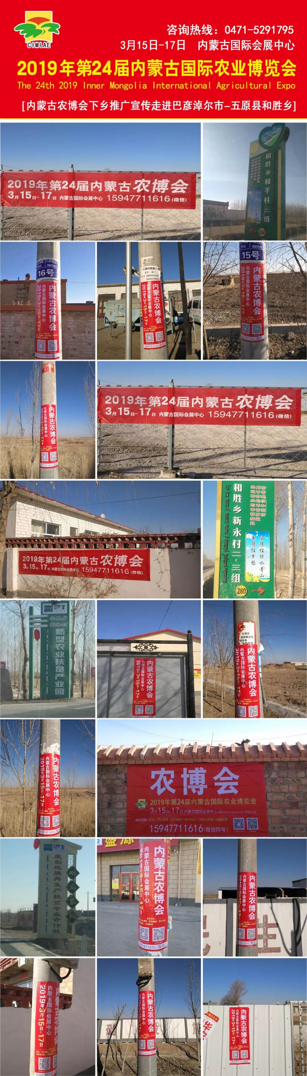 2019第24届内蒙古农博会下乡推广宣传现已全面启动,组委会以村为单位,安排10辆宣传车,投入巨资,重点走访呼和浩特、乌兰察布、鄂尔多斯、巴彦淖尔、乌海、阿拉善盟、河北、北京、天津、甘肃、山西等地的农资经销商、农资市场、农业合作社、种植大户及绿化灌溉公司,以条幅、即时贴、海报等形式对展会进行推广!实事求是,深入基层,专业专注,全心全意服务于每一位支持内蒙古农博会的新老客户,2019年3月15日,让我们一起相约呼和浩特内蒙古国际会展中心,我们将以最饱满的热情欢迎四海宾朋,共商合作,共谋发展!