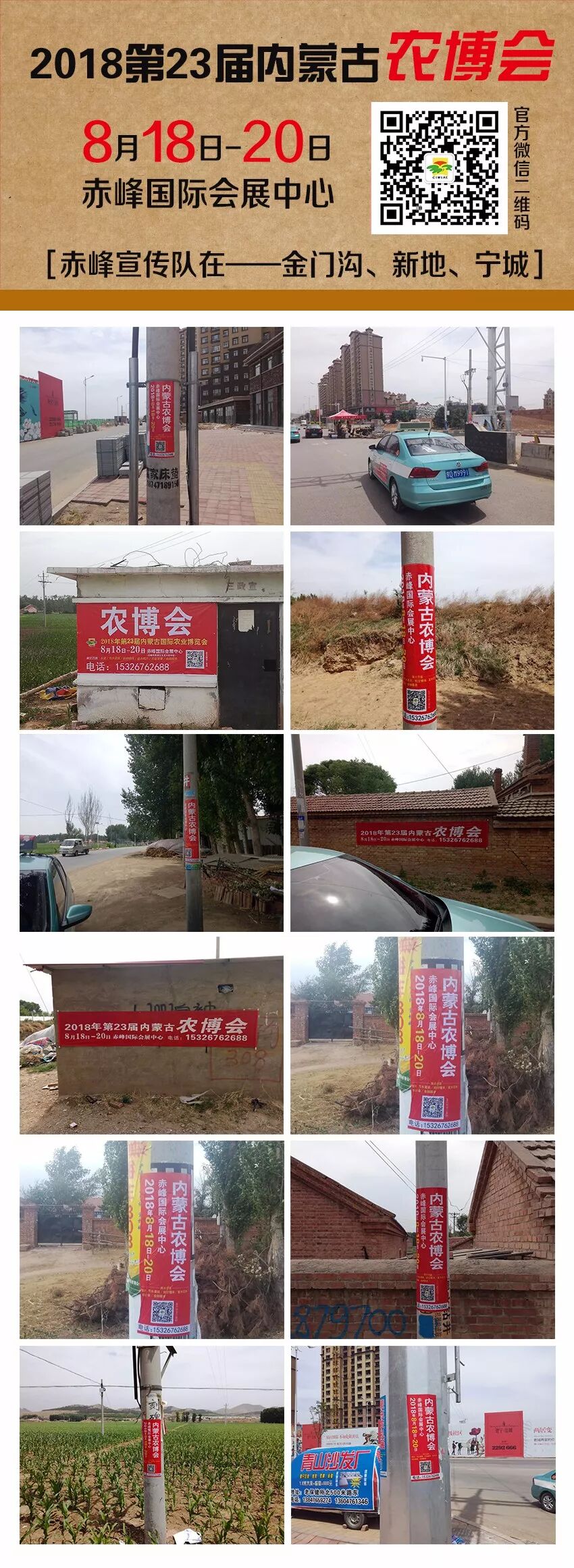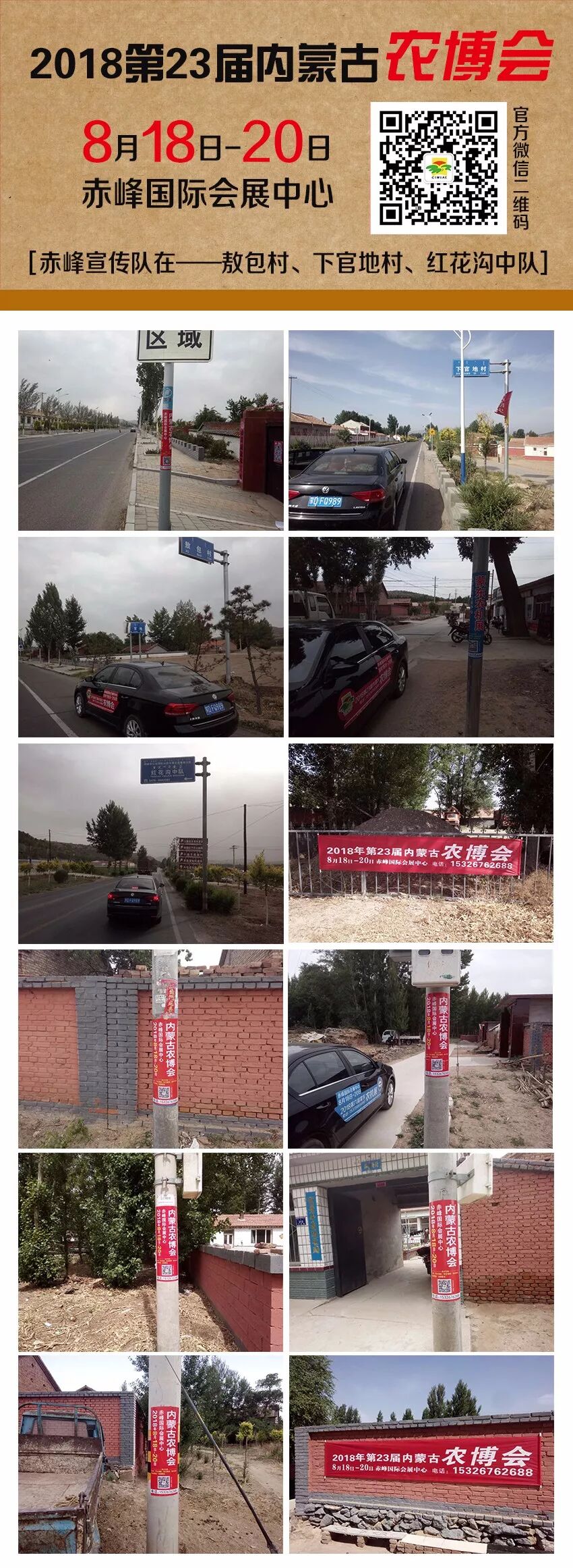 2018第23届内蒙古农博会下乡宣传推广一直积极努力进行中,组委会以村为单位,安排10辆宣传车,投入巨资,重点走访赤峰、通辽、兴安盟、呼伦贝尔、东三省、河北、北京、天津等地的农资经销商、节水灌溉经销商集散地、农业合作社及种植大户、设施农业基地等相关行业部门,以大量的条幅、即时贴、海报、门票、展报等形式对展会进行推广!我们专业专注,全心全意负责于每一位支持内蒙古农博会的新老客户。8月18号让我们相约美丽的赤峰!欢迎关注!